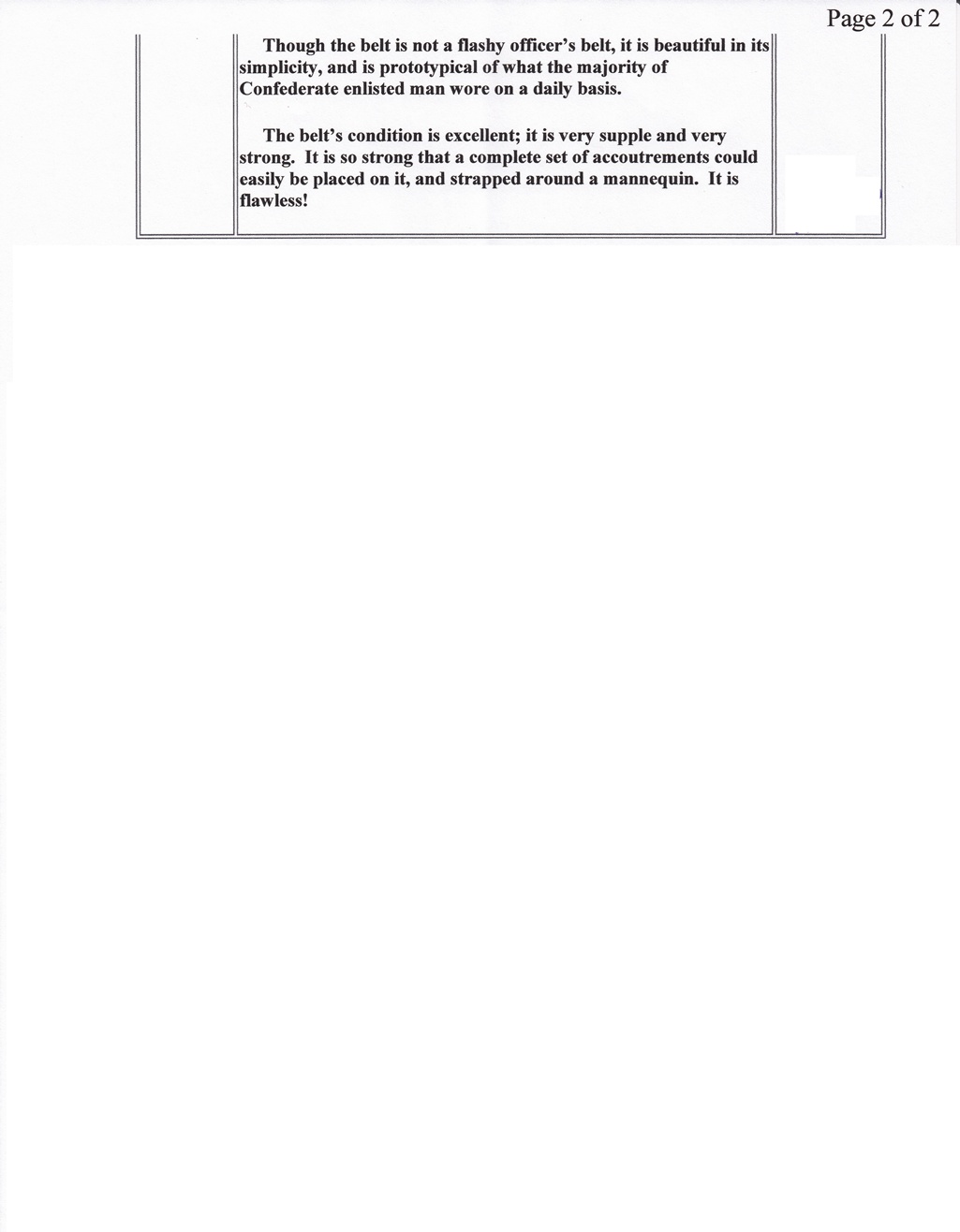 CS-BELT01. CONFEDERATE ARSENAL WAIST BELT: I recently acquired this Confederate Arsenal Waist Belt in trade from a client who purchased it from Shannon Pritchard, Old South Military Antiques. The following description is direct from Shannon’s original listing: see above photos.