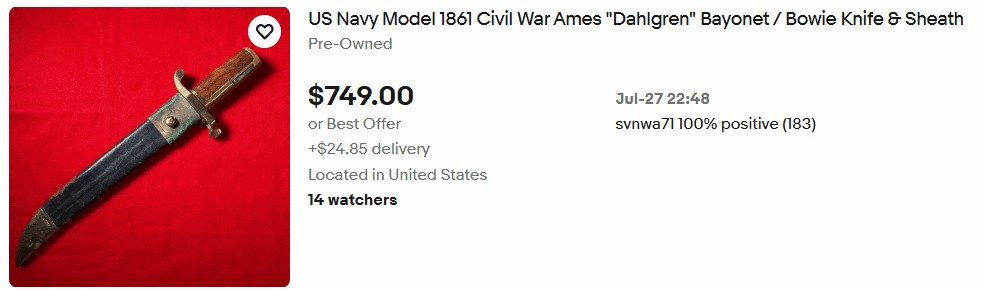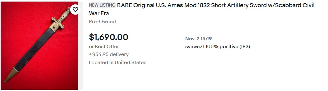 Swords - Sabers - D-Guards - Bowies - Muskets - Rifles - Pistols - Revolvers